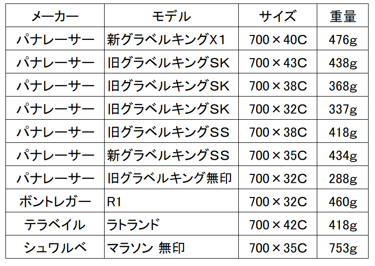 重量が最も軽い「レーサー」。これは「グラベルキング+」と同等なレベルって気がする。
