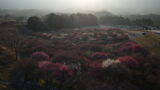断崖の割れ目から、地下水が流れ落ちる不思議な滝。