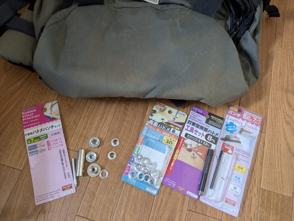 ザックにハトメ加工・加水分解を対策したので書いていこうと思う。