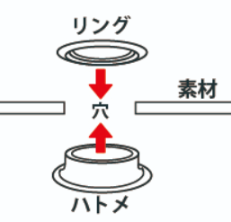 ⑤素材の上に、ハトメ金具メス(リング)を被せる