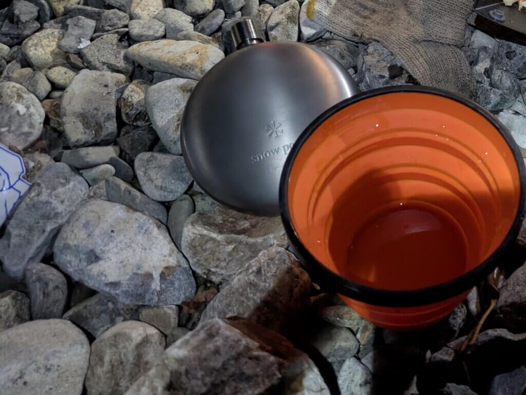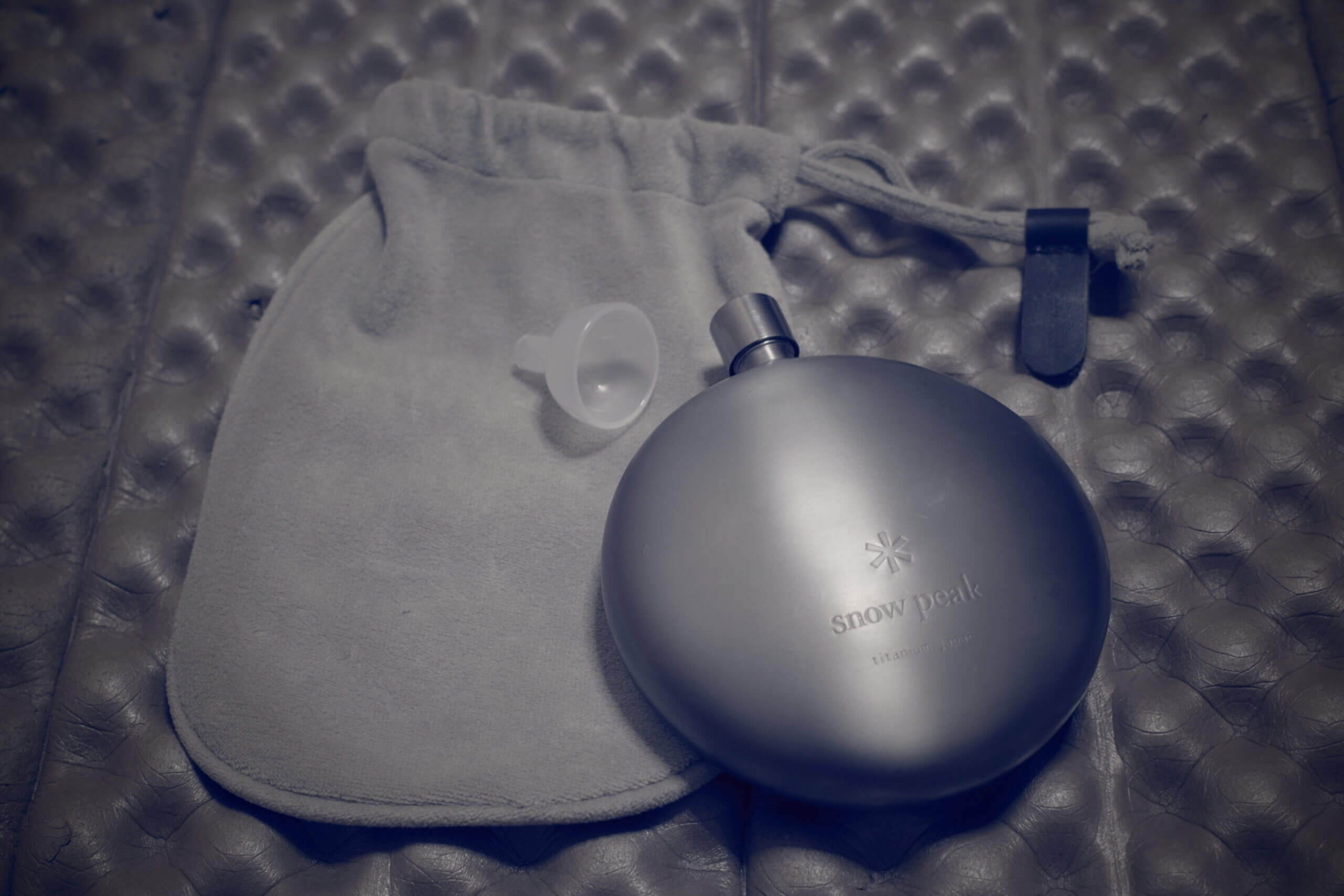 ↑沢泊・山泊など泊まりの時に、お酒を楽しむためにスキットルを買った