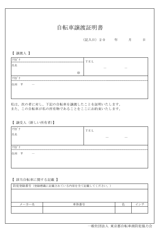 友人などから中古の自転車をもらった場合も、ネットで購入した自転車を登録する場合と同様に自転車防犯登録所の店舗で手続きできますが、譲渡証明書が必要になる。