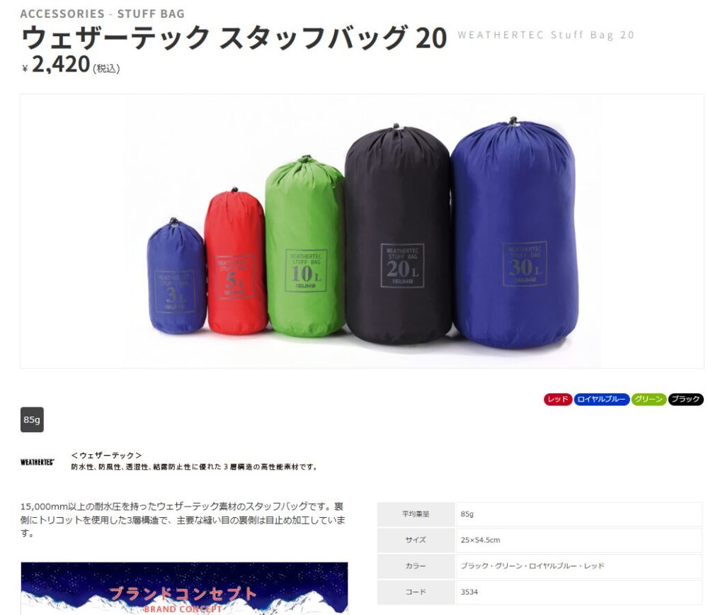 ライトスタッフバッグ(モンベル)・ウェザーテック スタッフバッグ (イスカ)
