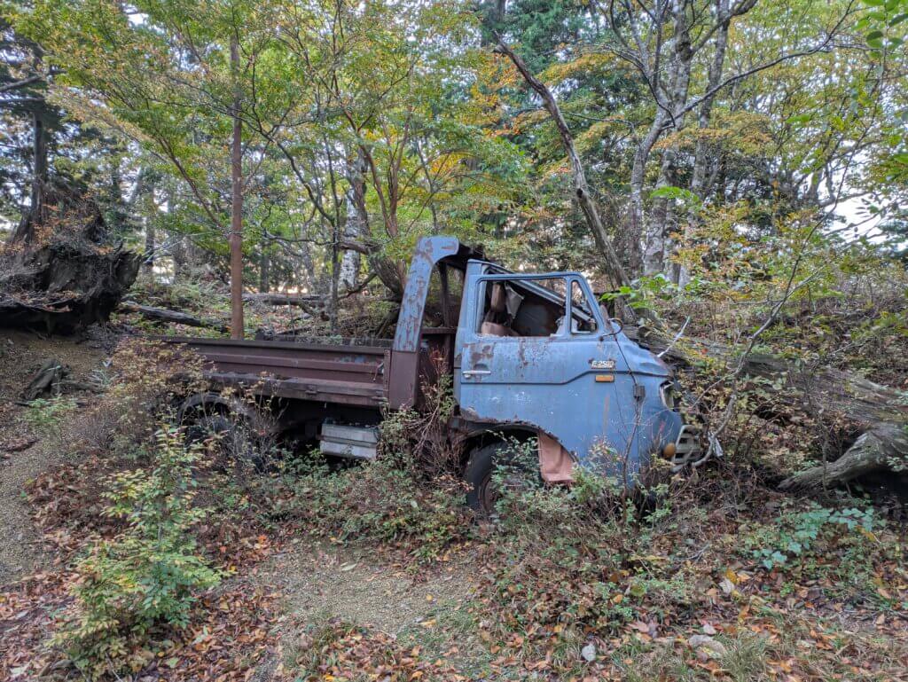 理由は登って行くと、「タイタン号(廃車)」が停まっているから。