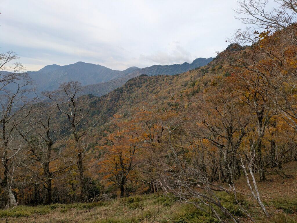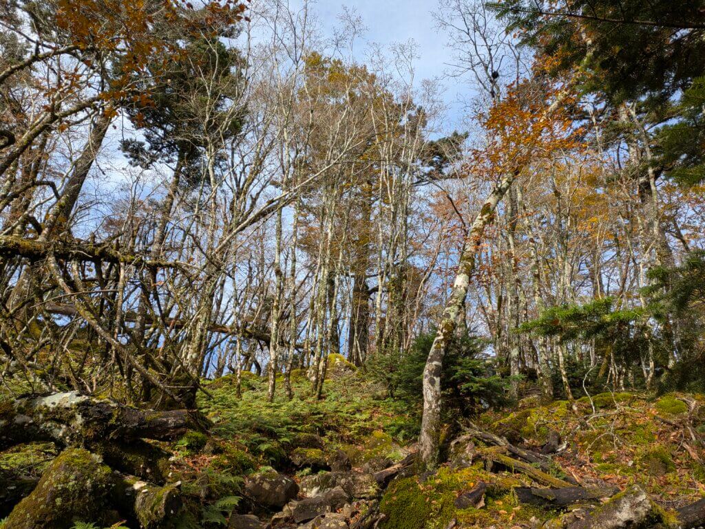 稜線が近くなると、ブナやナラの紅葉が良い感じだ。