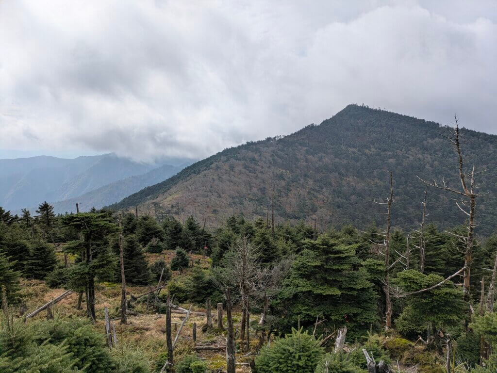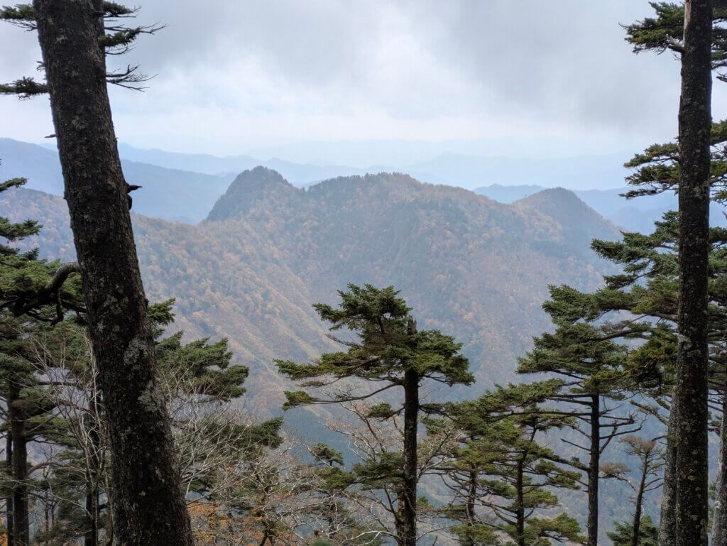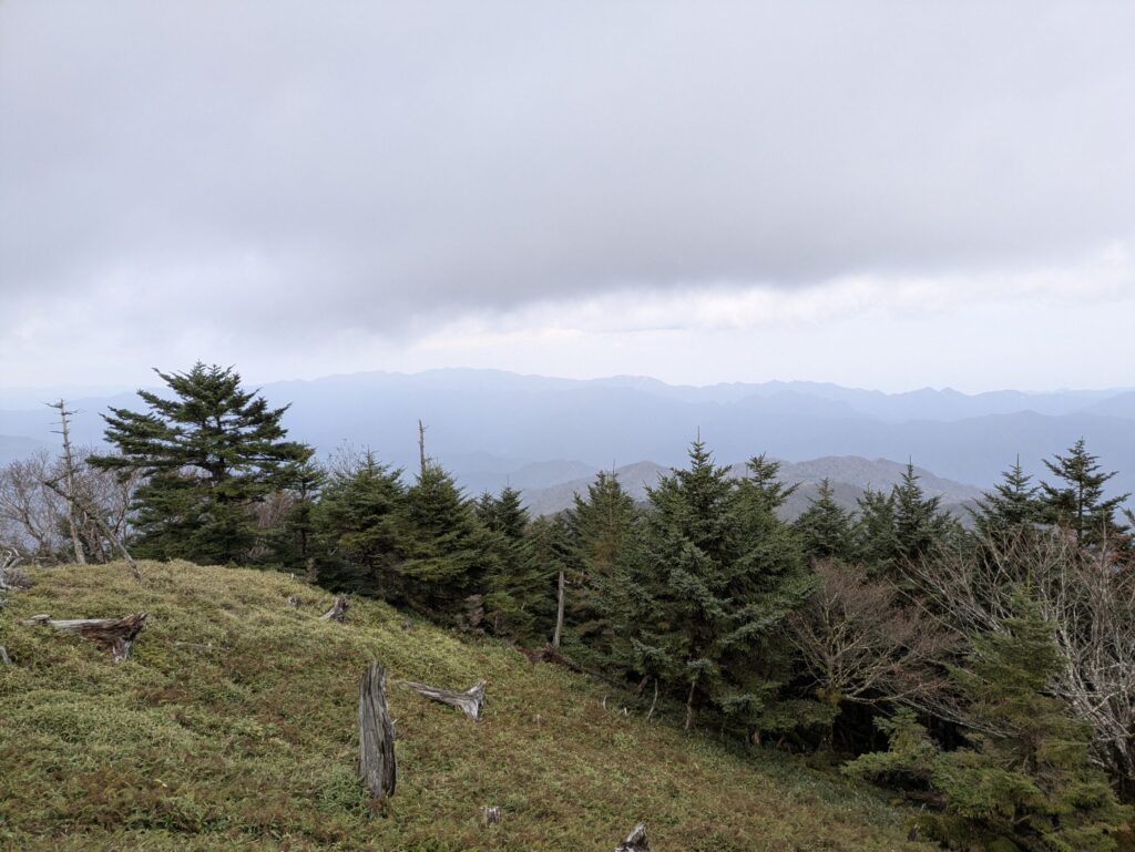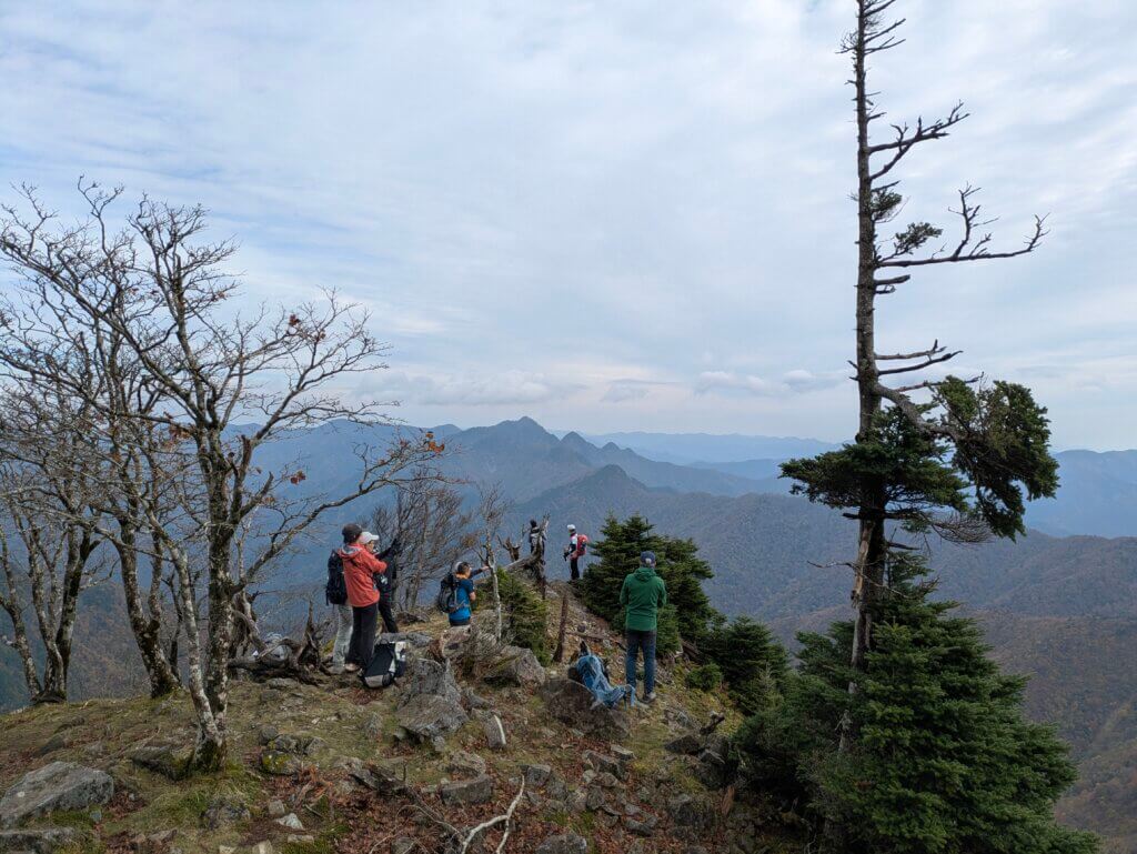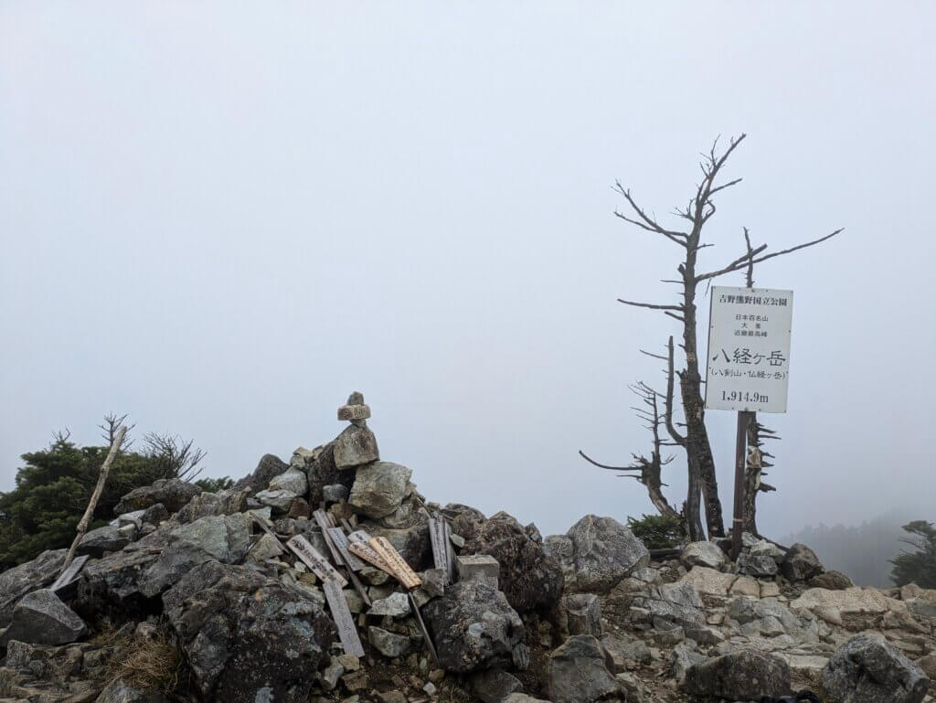 稜線へ出ると、正面に八経ヶ岳を拝むことができた。
