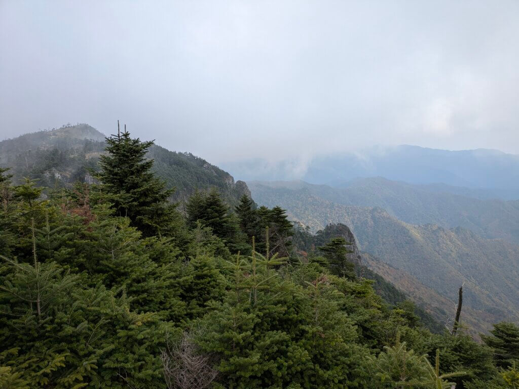 八経ヶ岳や明星ヶ岳は雲の中。。