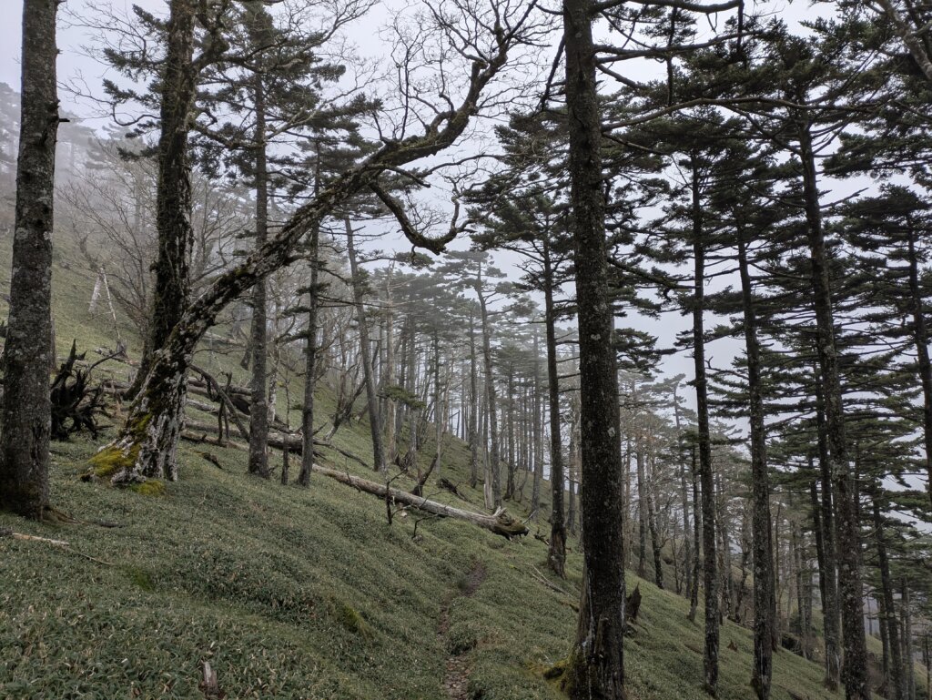 先々週の一ノ垰へ突き上げる尾根は、針葉樹が多い。