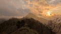 果無山脈へと沈みゆく夕陽を横目に進んでいく