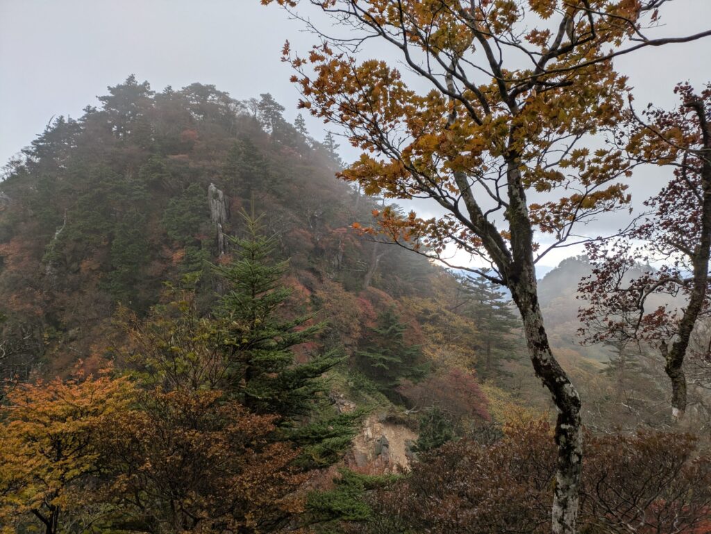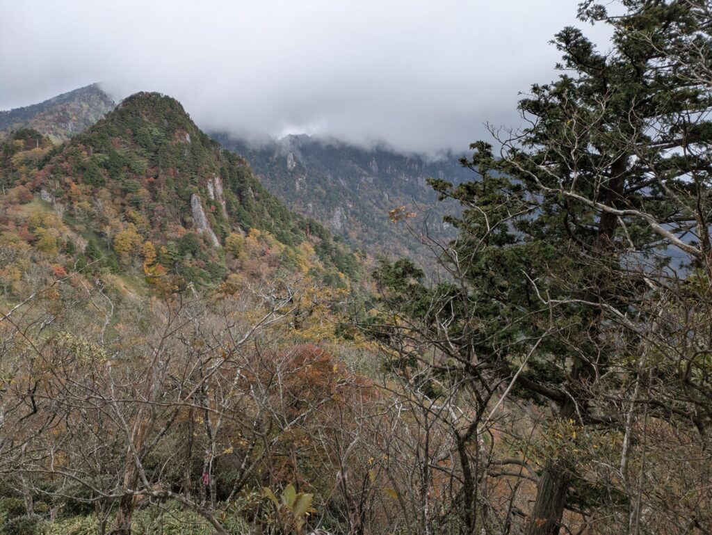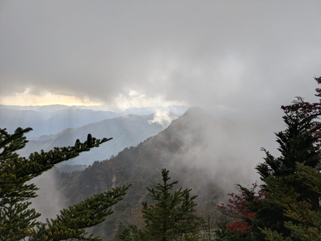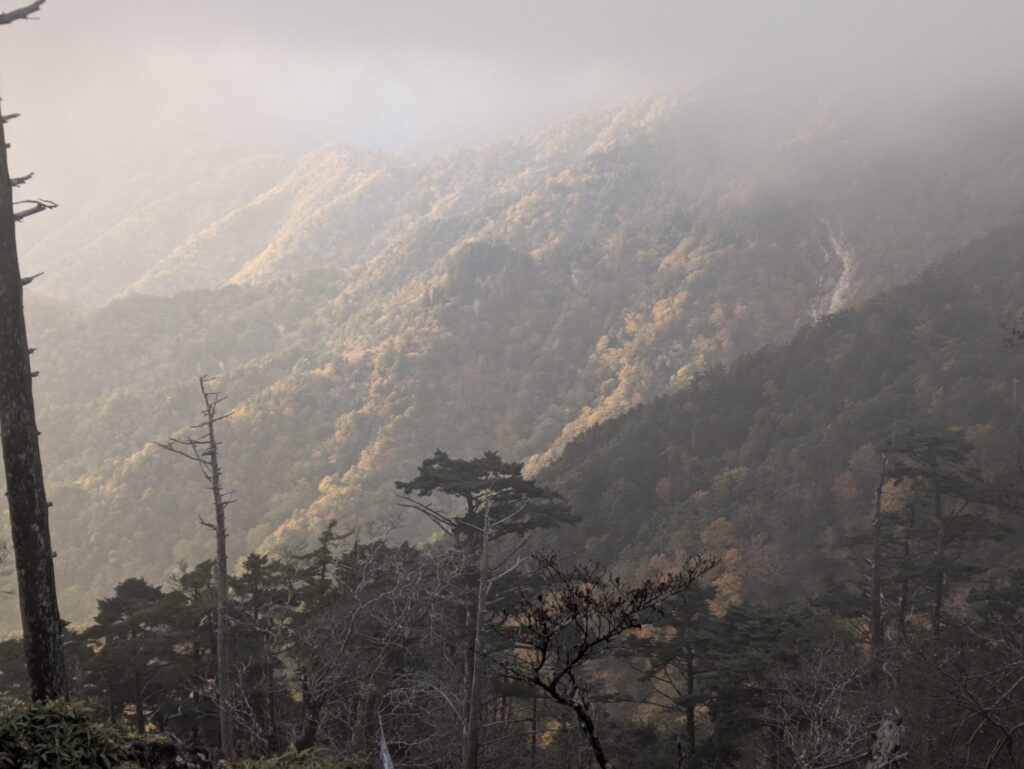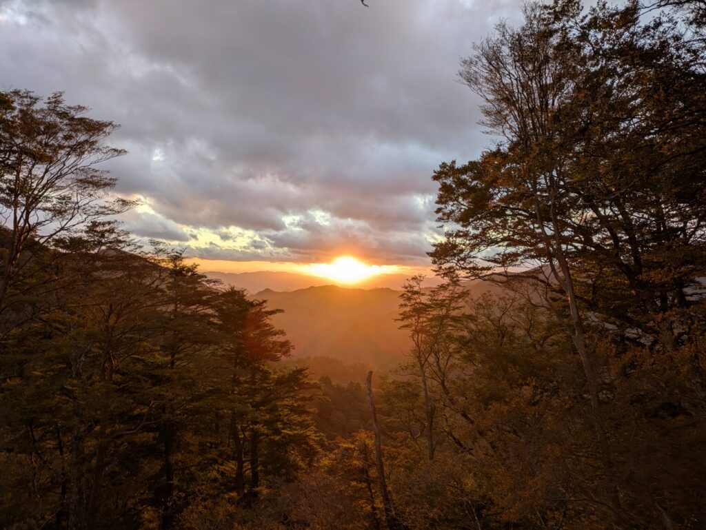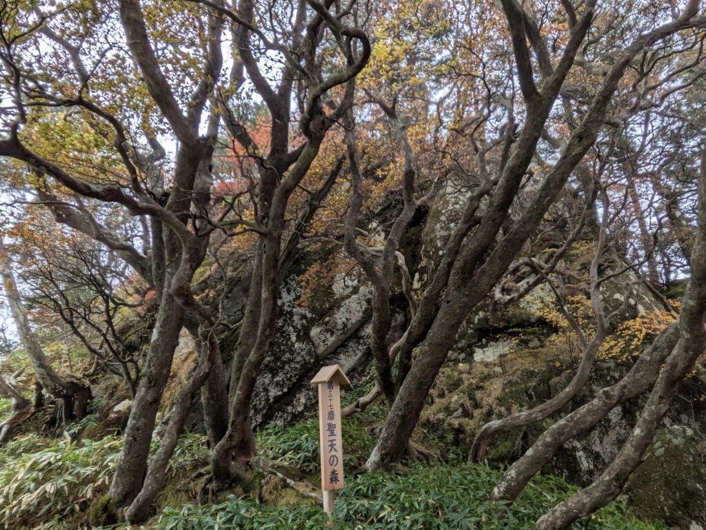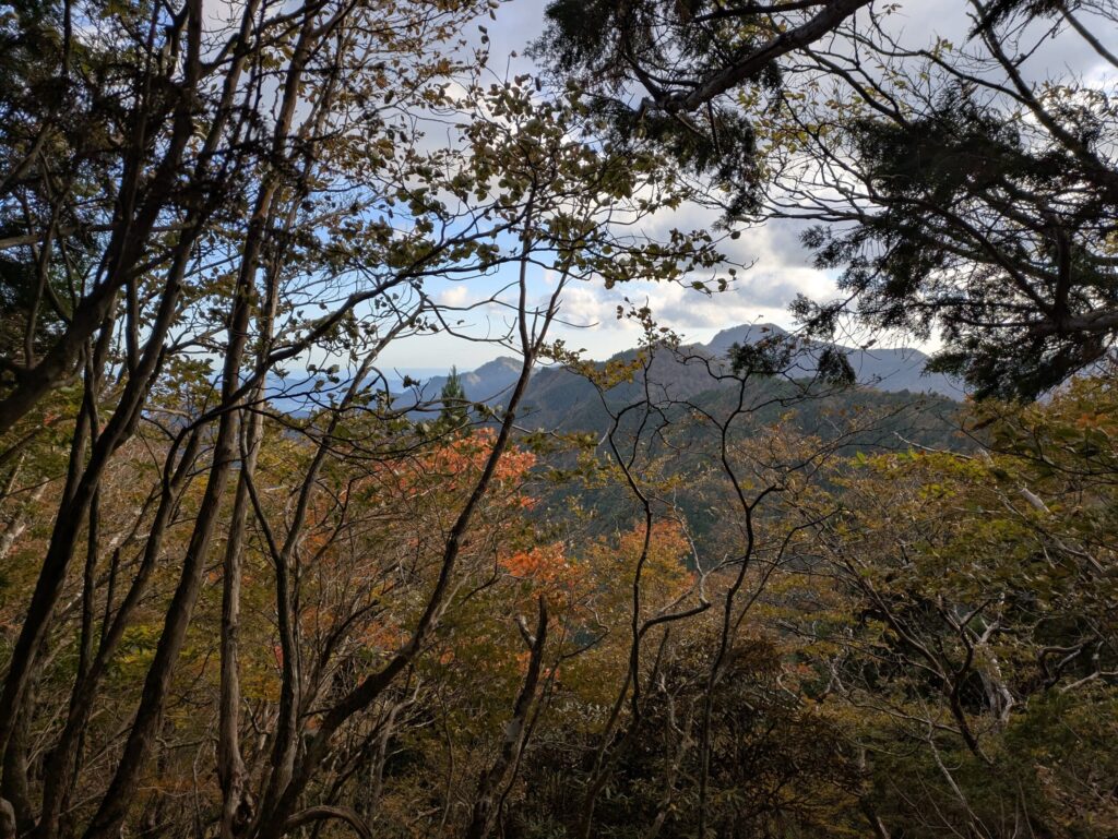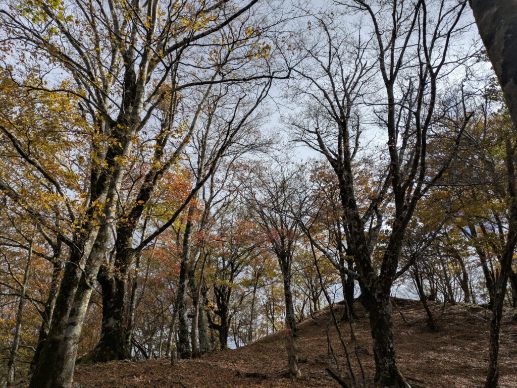 そこから奥駈道を歩いていくと、西斜面は広葉樹・東斜面は針葉樹になる。
