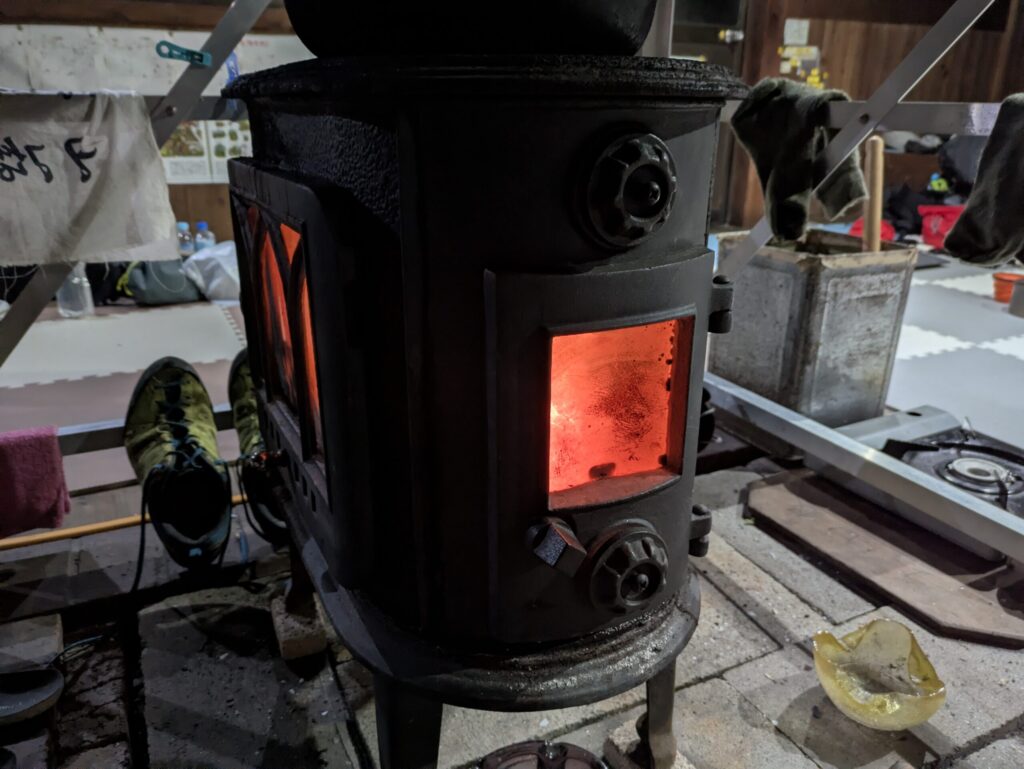 薪ストーブを点けて、小屋内11℃まで上がる(到着時8℃)。