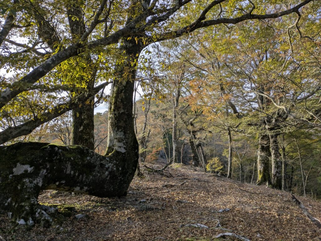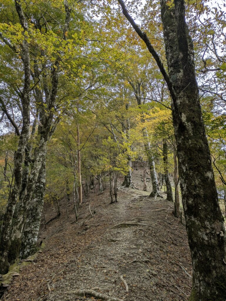 世界遺産碑から、玉置山への登りはブナ林の中を進んでいく。