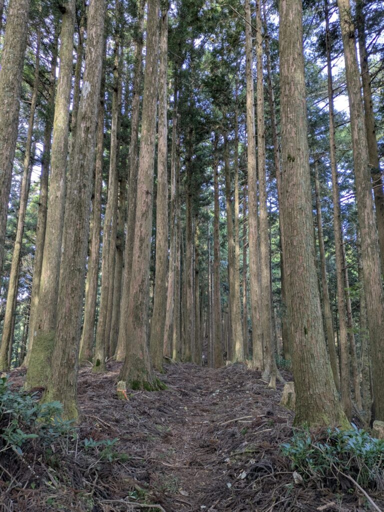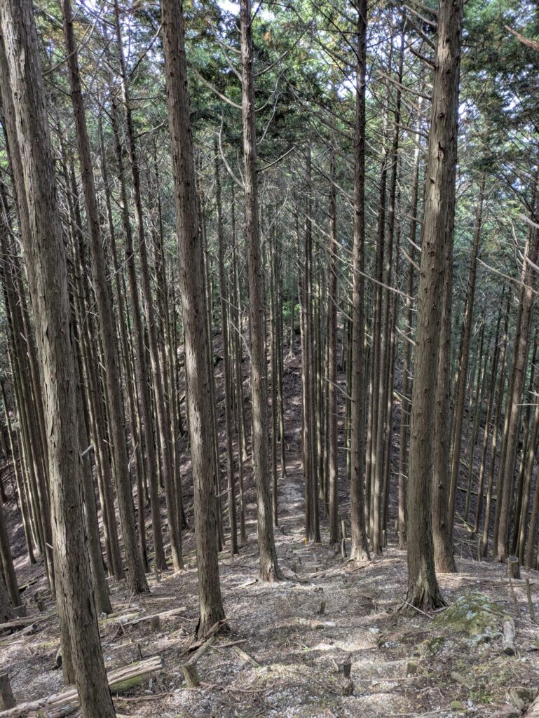 香精山過ぎてから、広葉樹ではなく針葉樹だらけだったな。