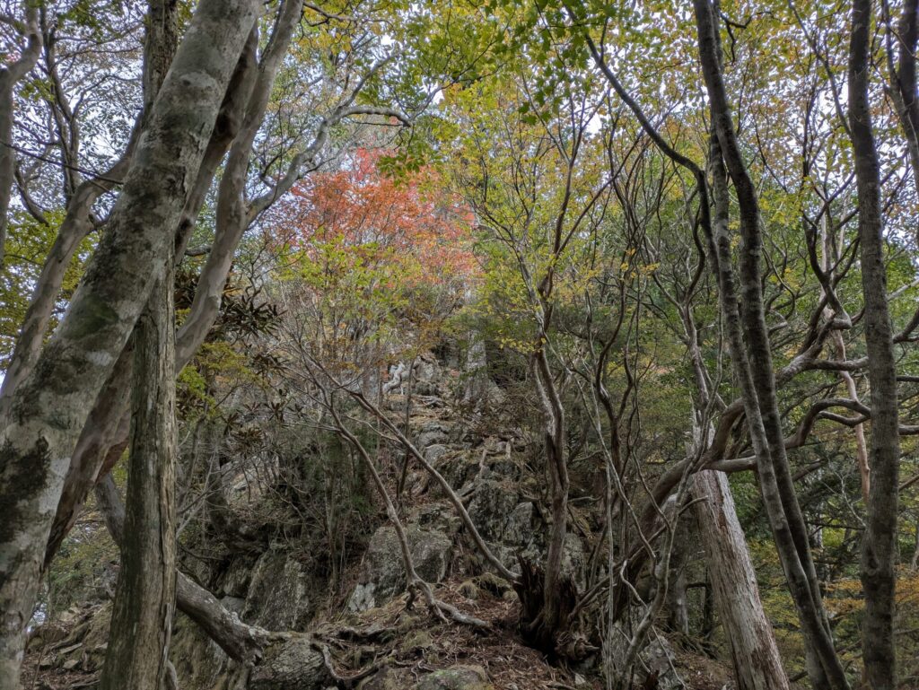 傘捨越を過ぎた所、地蔵岳手前、香精山手前。