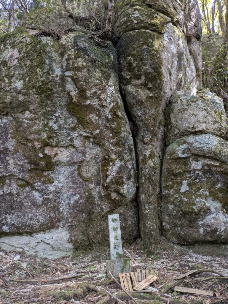 大岩を登ると、「槍ヶ嶽」と書かれた行場がある。