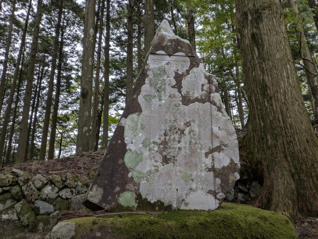 更に杉林を下って行くと「金剛童子塔之谷」碑があり礼拝する