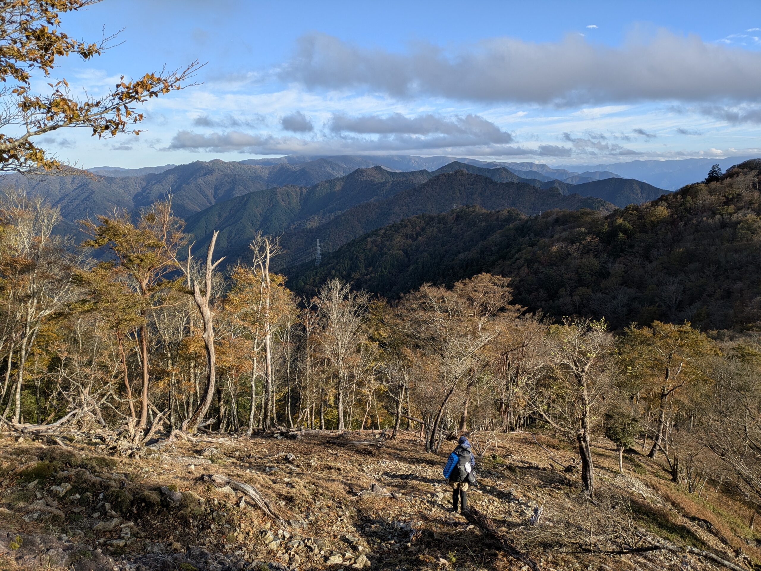 振り返ると、歩いてきた奥駈道が見えるからだ。