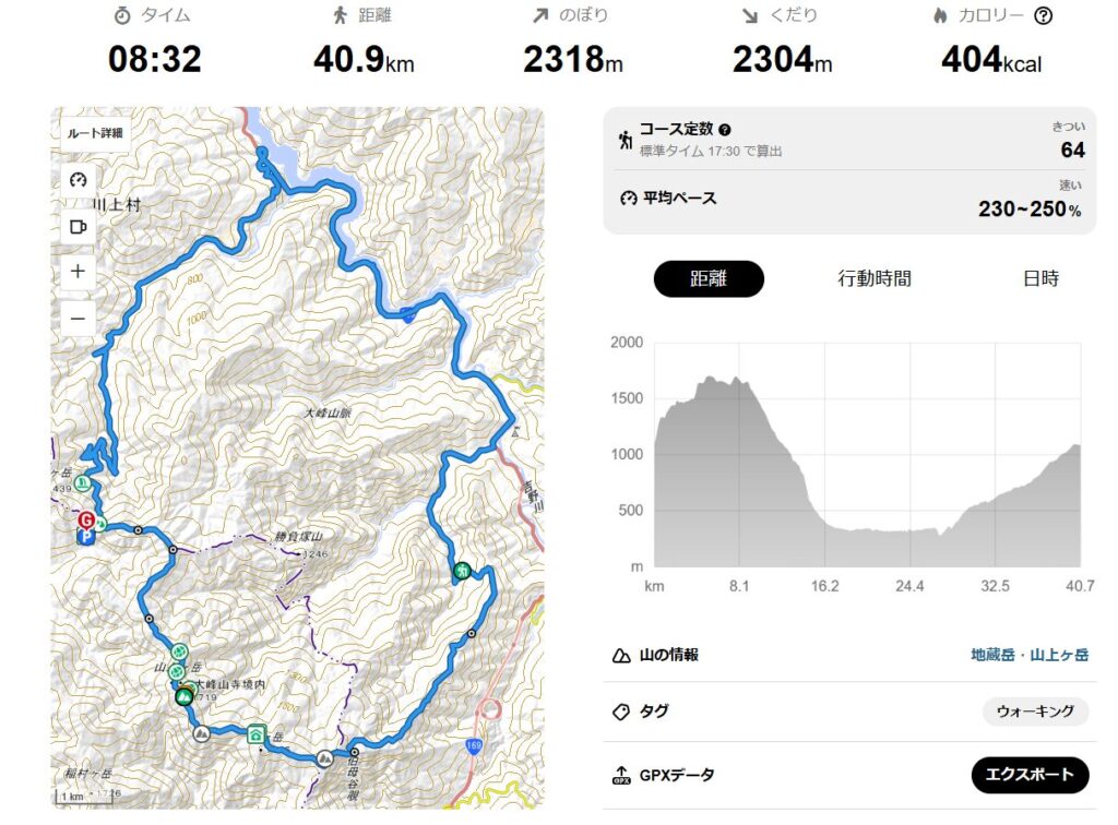 総距離 :40.9km(+2318m、-2304m)