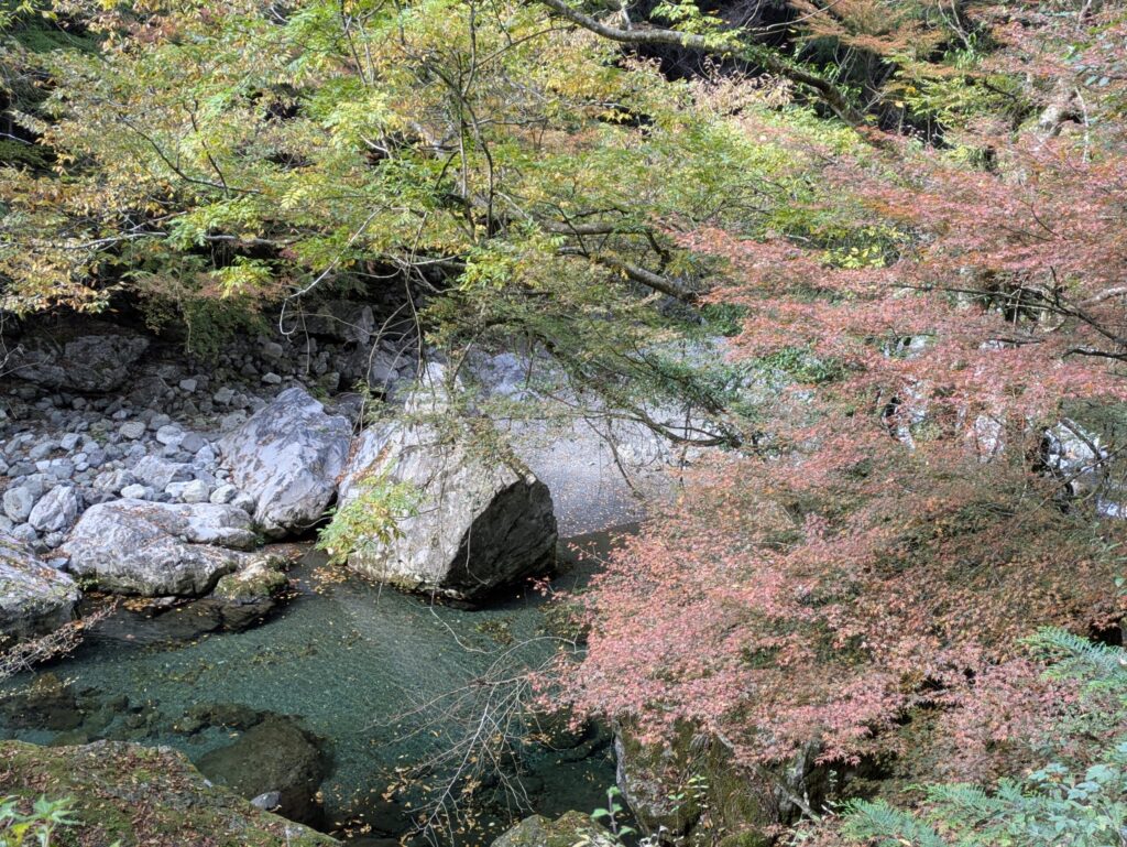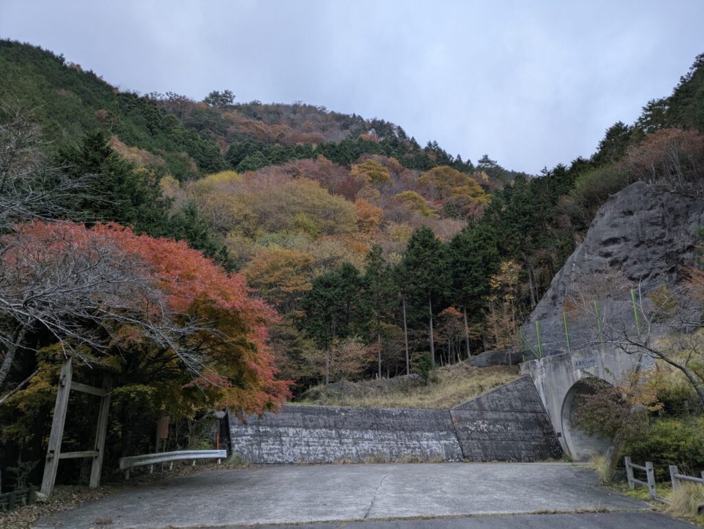 五番関トンネルを越えると、紅葉のカエデが迎えてくれる。