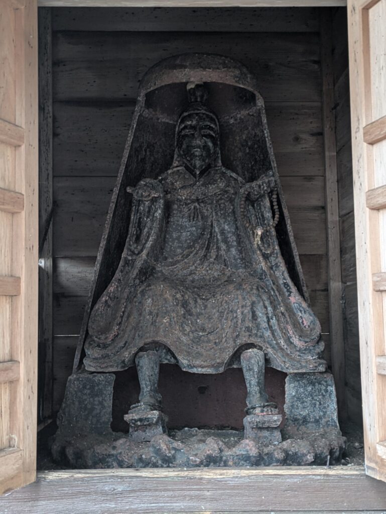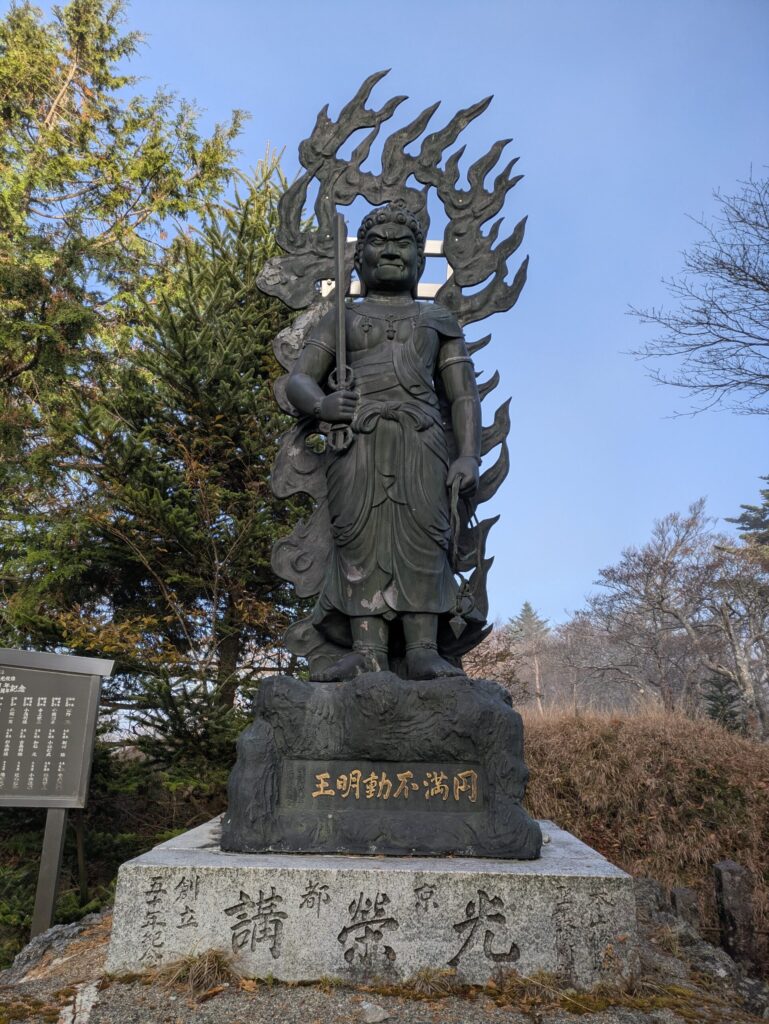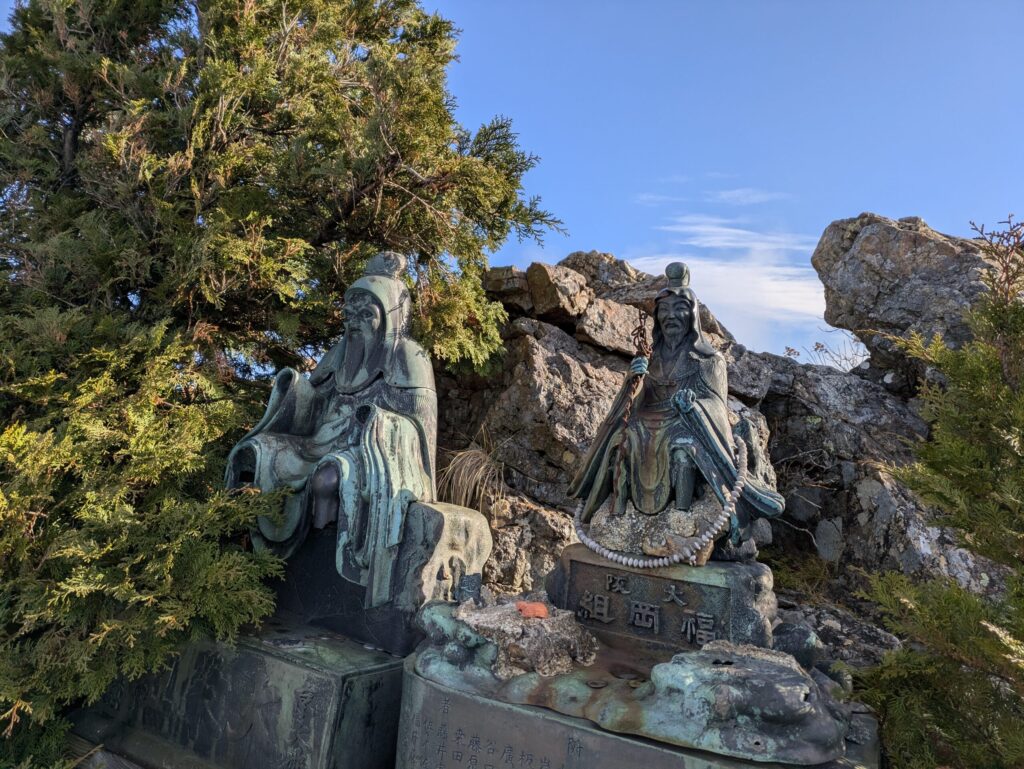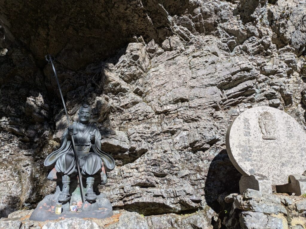 洞川道と吉野道の合流点に青銅の像が立つ。