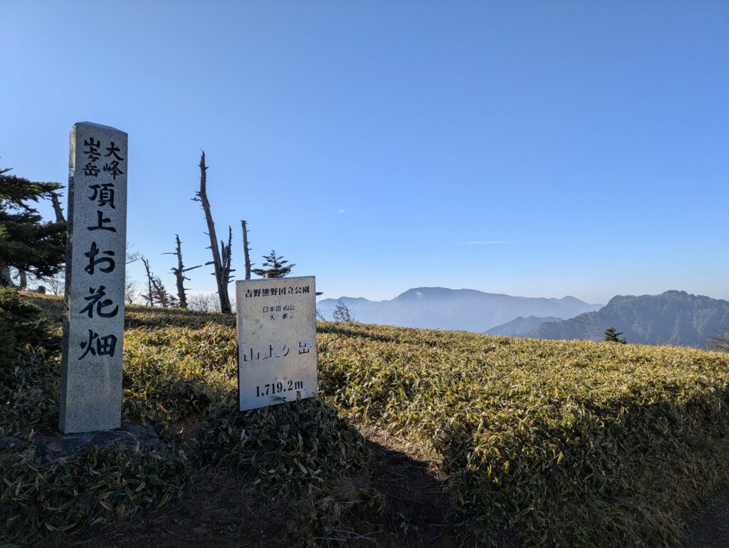 大峰山系に大峰山というピークは存在しないが、一般的に大峰山といえばこの山上ヶ岳か、最高峰の八経ヶ岳を指す。