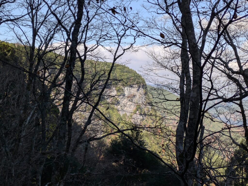柏木道と並行しているんだが、先端からの岩壁の落ち具合がエグイな。。