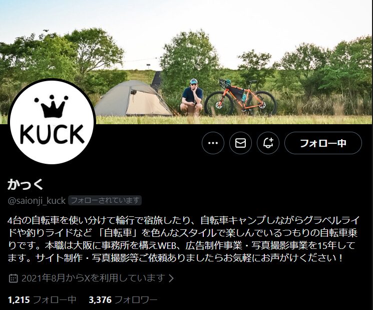 趣味嗜好(自転車キャンプやグラベルライド)が似ており、いつも楽しく拝見している。
