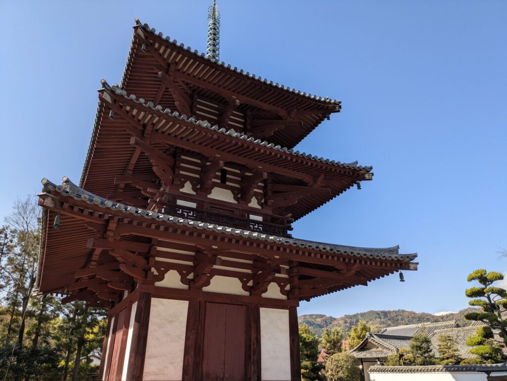 五重塔は、 高さ約31.5メートルで、飛鳥時代の様式を伝える日本最古の塔。