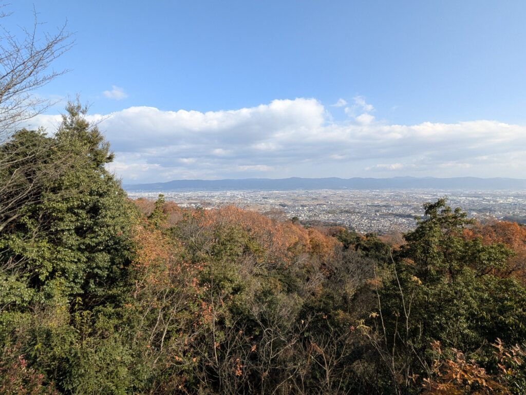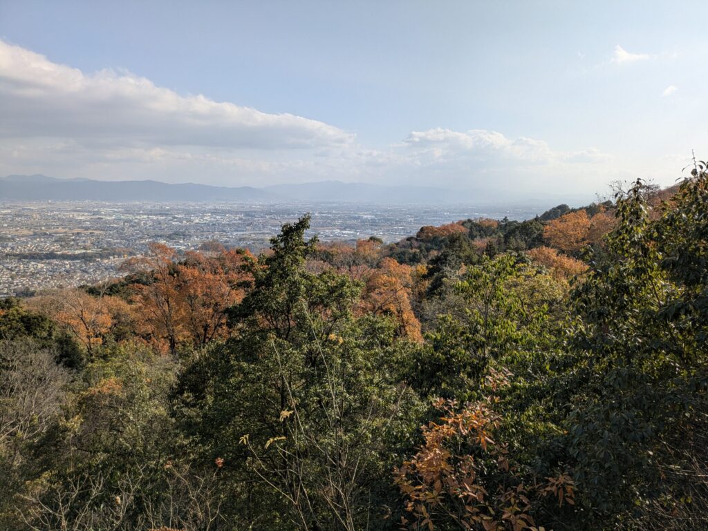 奈良県の北西にある生駒市の中央部から、斑鳩町の法隆寺にかけて縦に長く連なるなだらかな丘陵です。