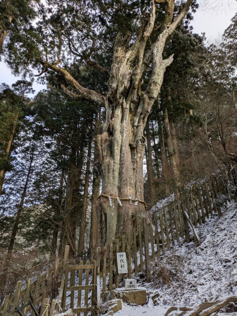 「樹齢三千年・幹周八.五米」で、玉置神社の御神木である。
