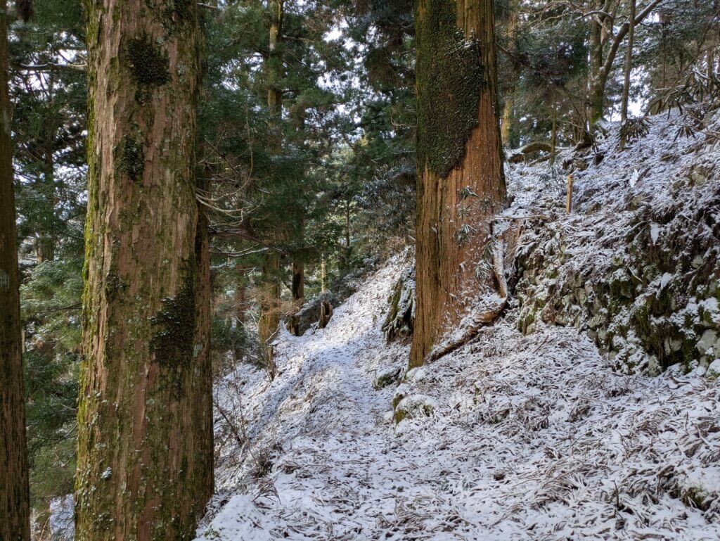 ここから下りが急峻で雪が薄っすら付いて慎重に下る。