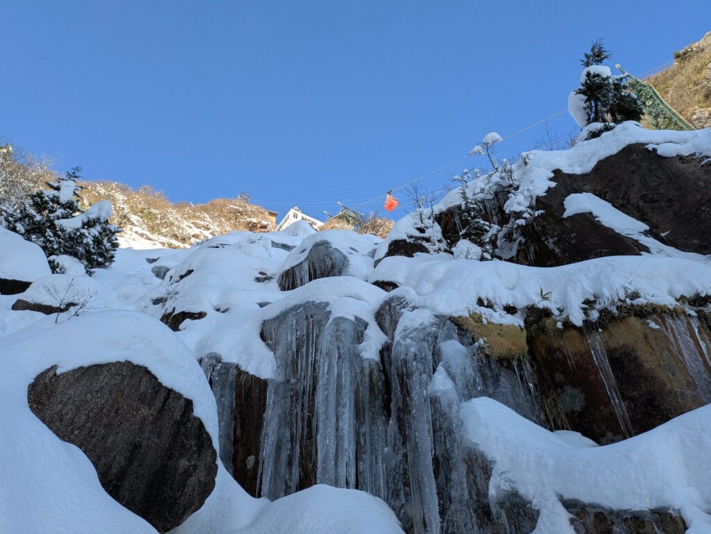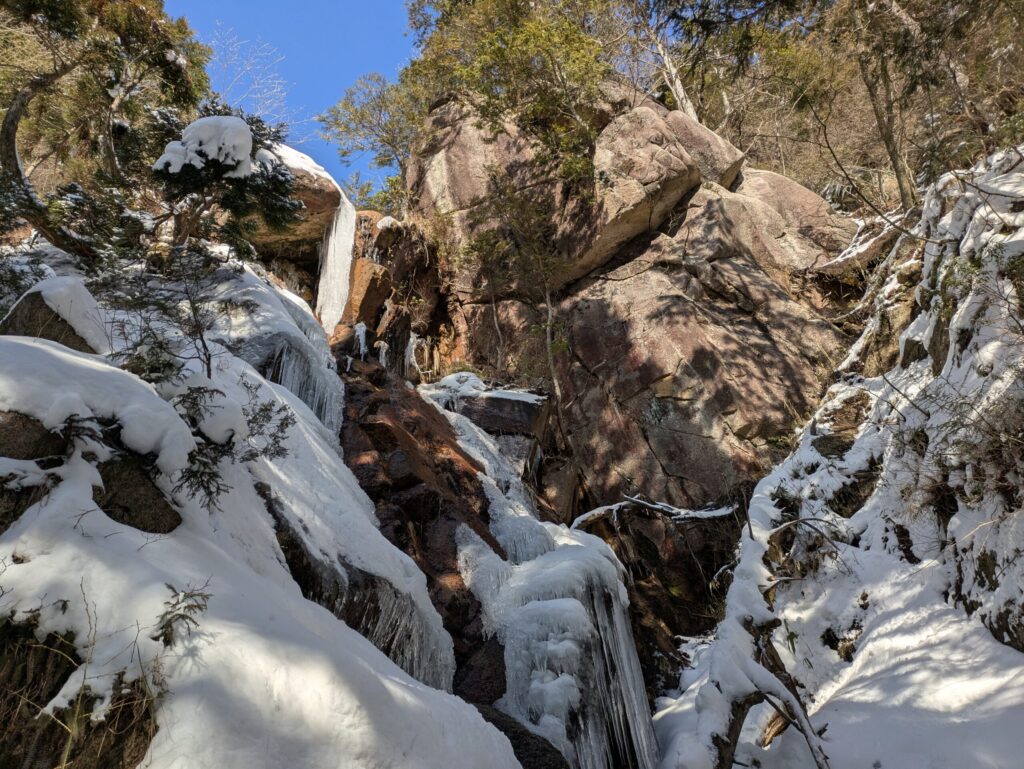 ただ氷が薄く、岩と氷の間をジャージャー水流れている。。。。