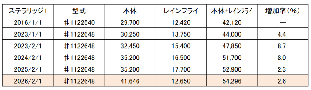 毎年恒例の、モンベルの価格(ステラリッジ1)について書いていこうと思う。
