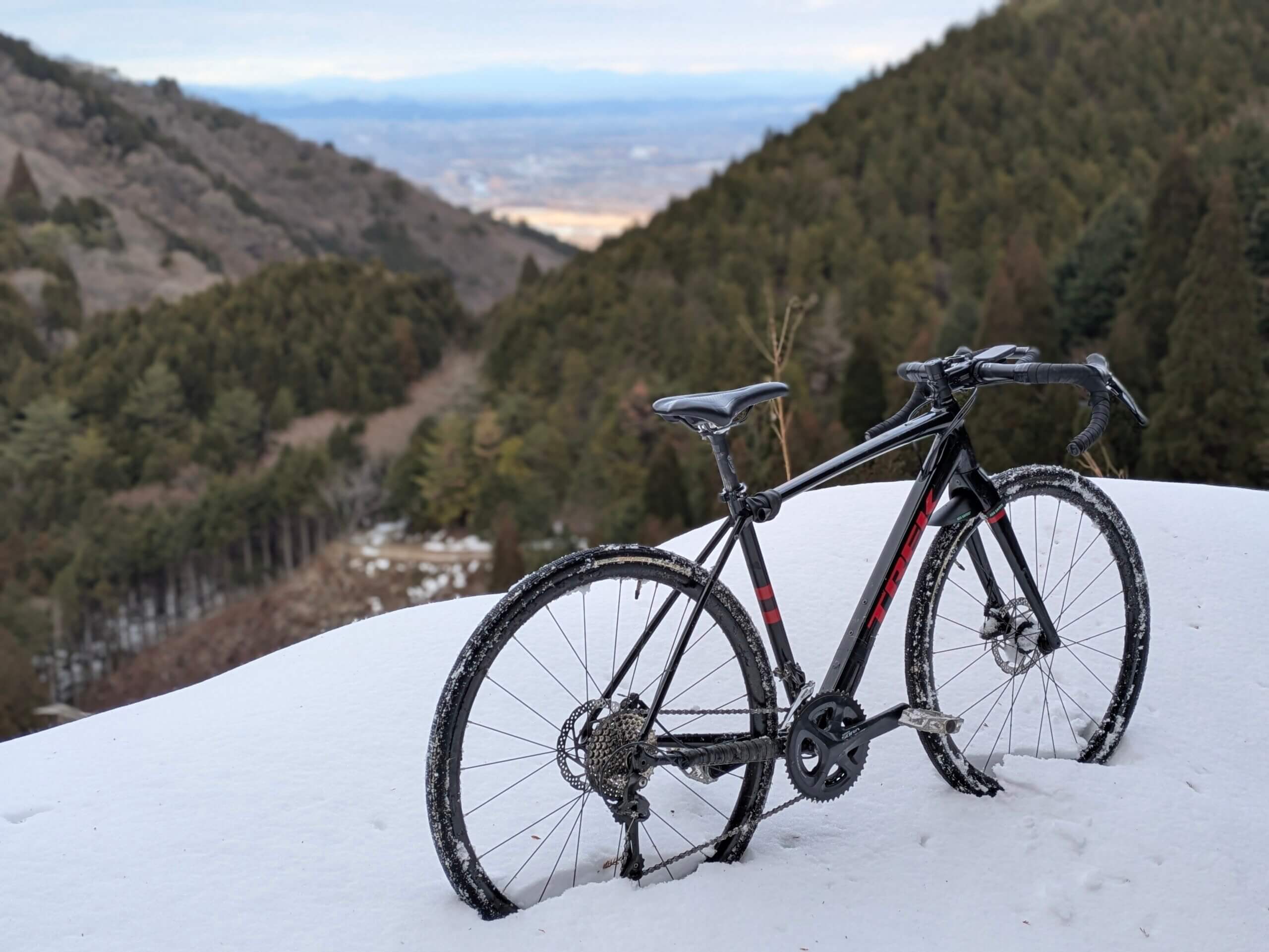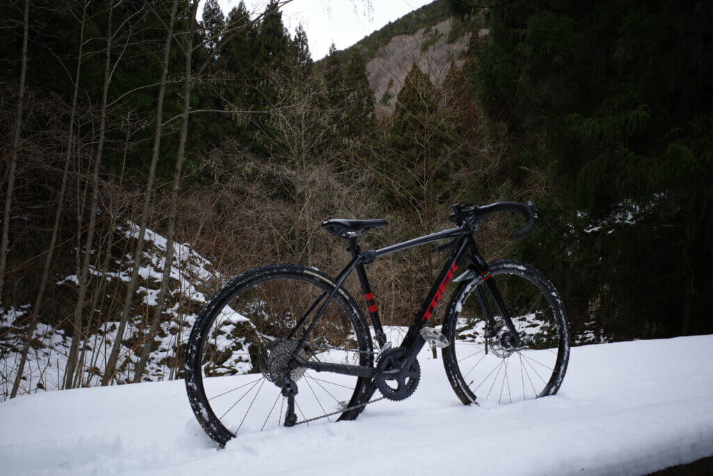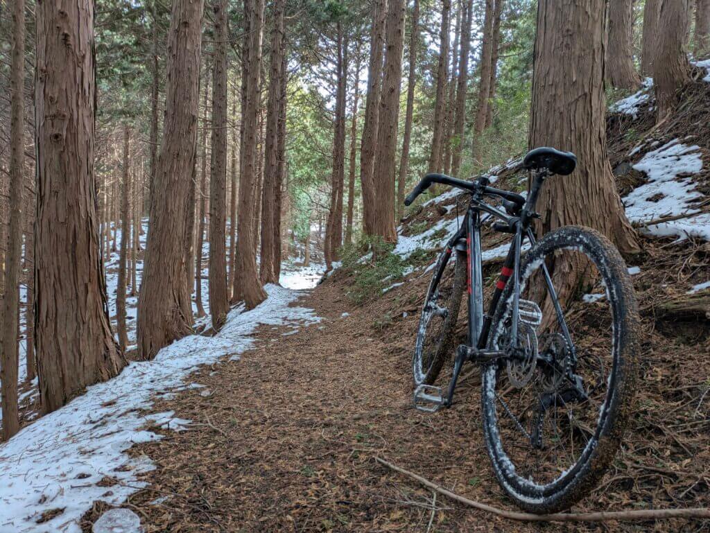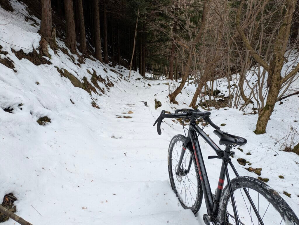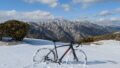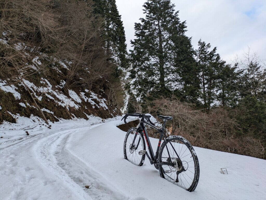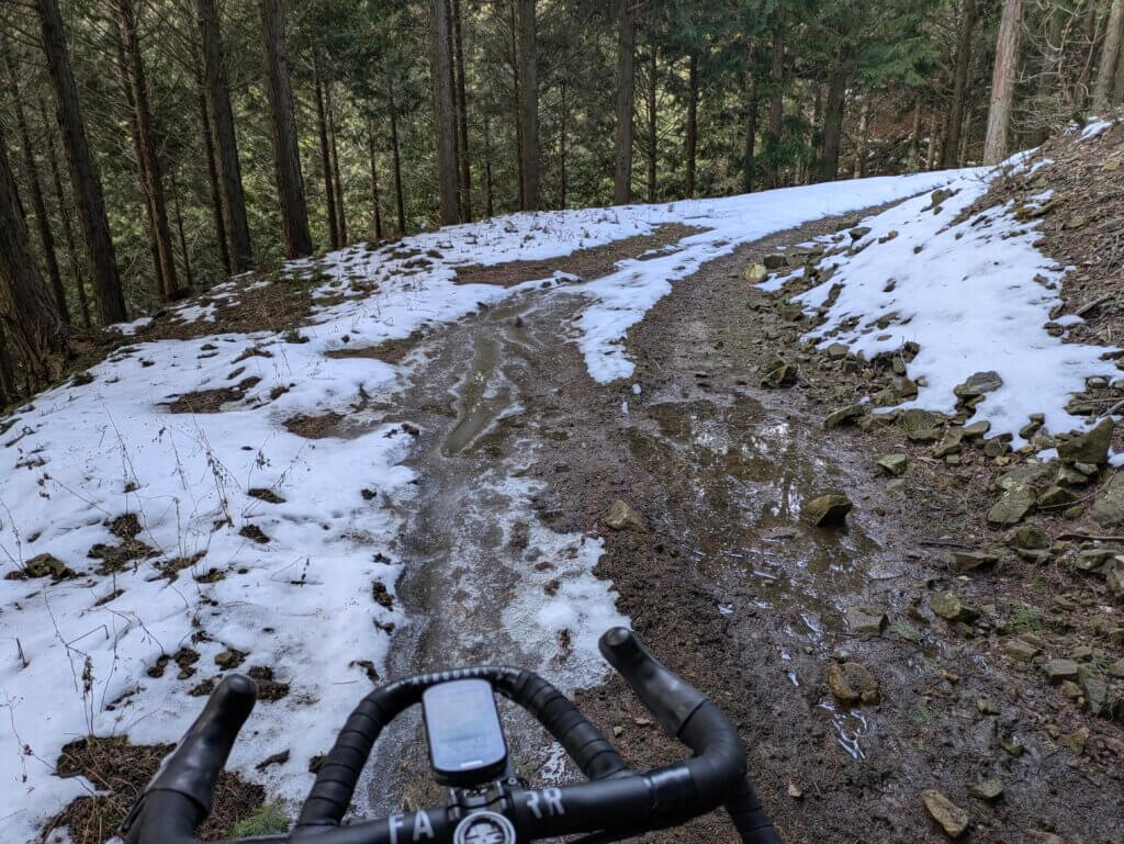 思ったより雪があり、雪山サイクリングとなった。
