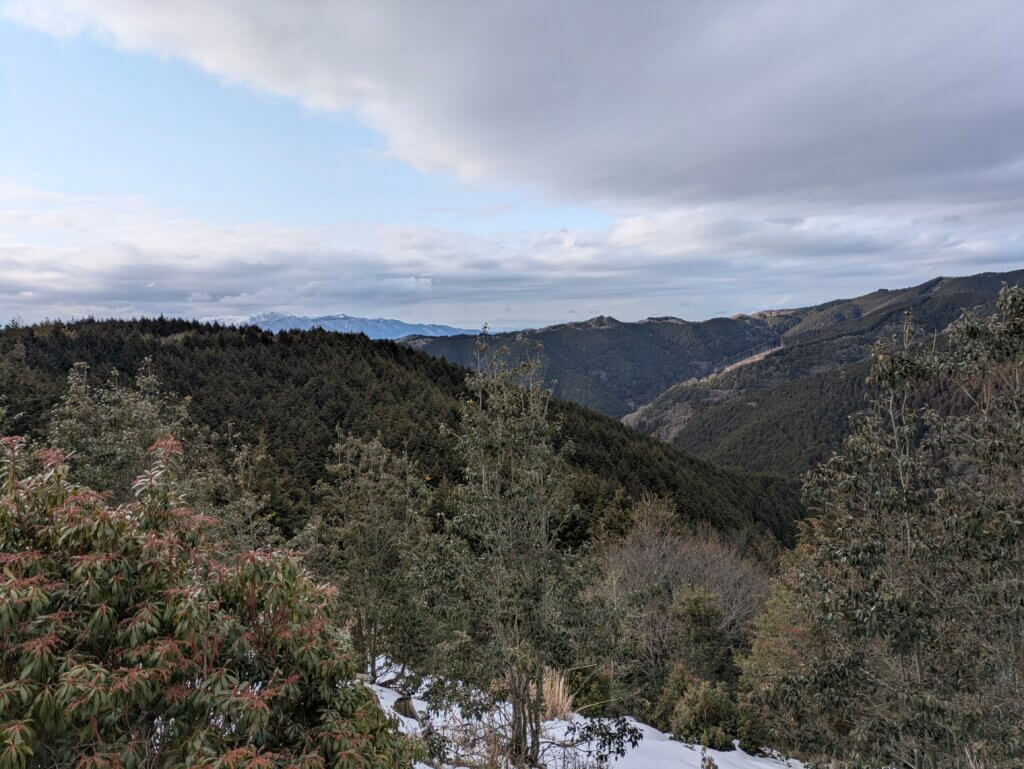 左奥の山が冠雪し真っ白だな。