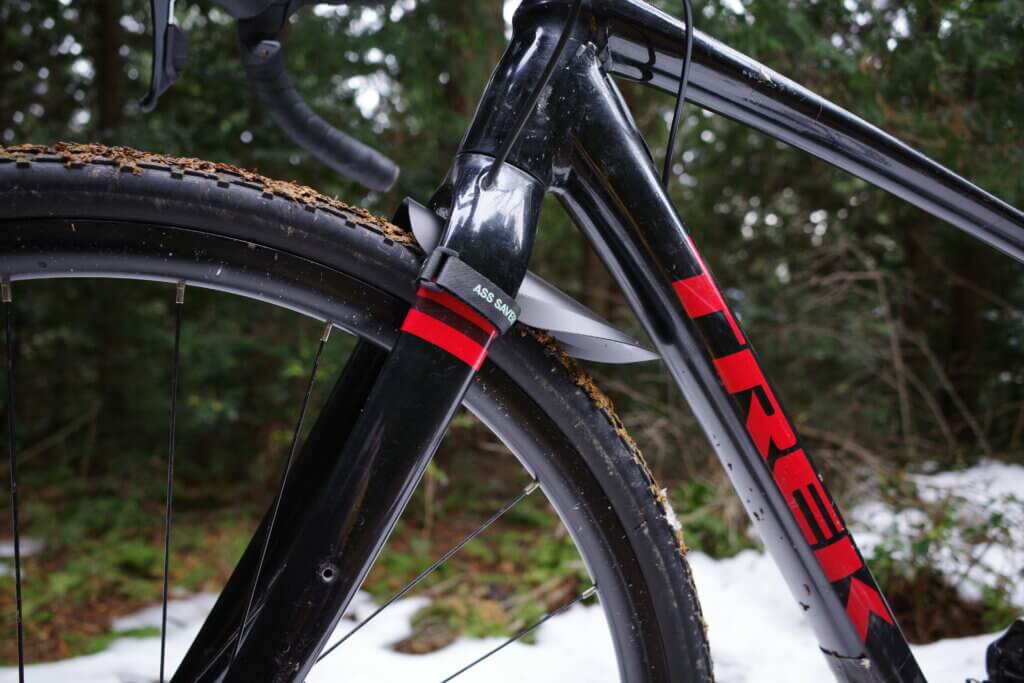 タイヤサイズ38だけど、雪や泥がタイヤに付くと泥除けに擦ってしまう。タイヤサイズ43だと擦りそうだな…