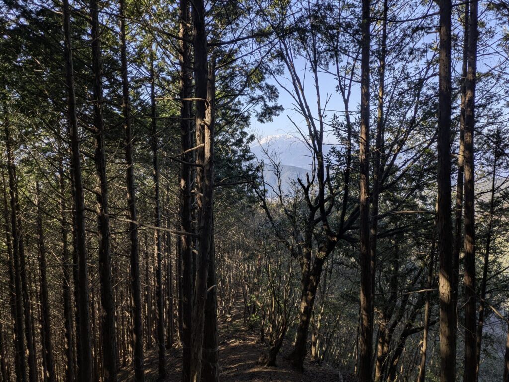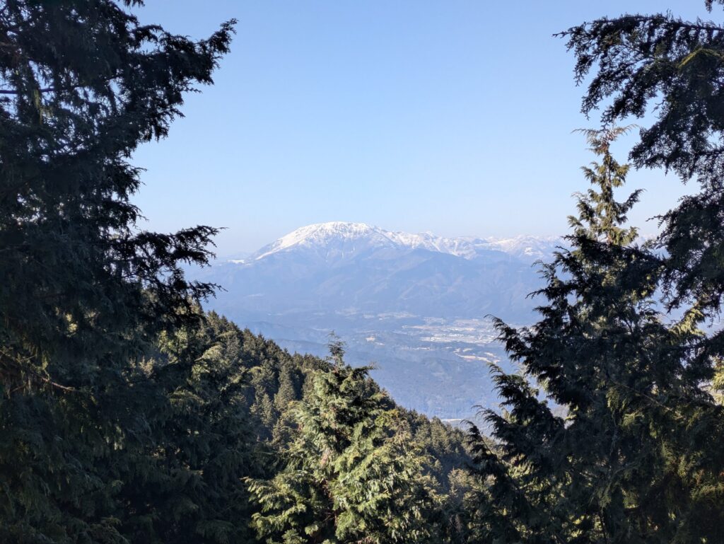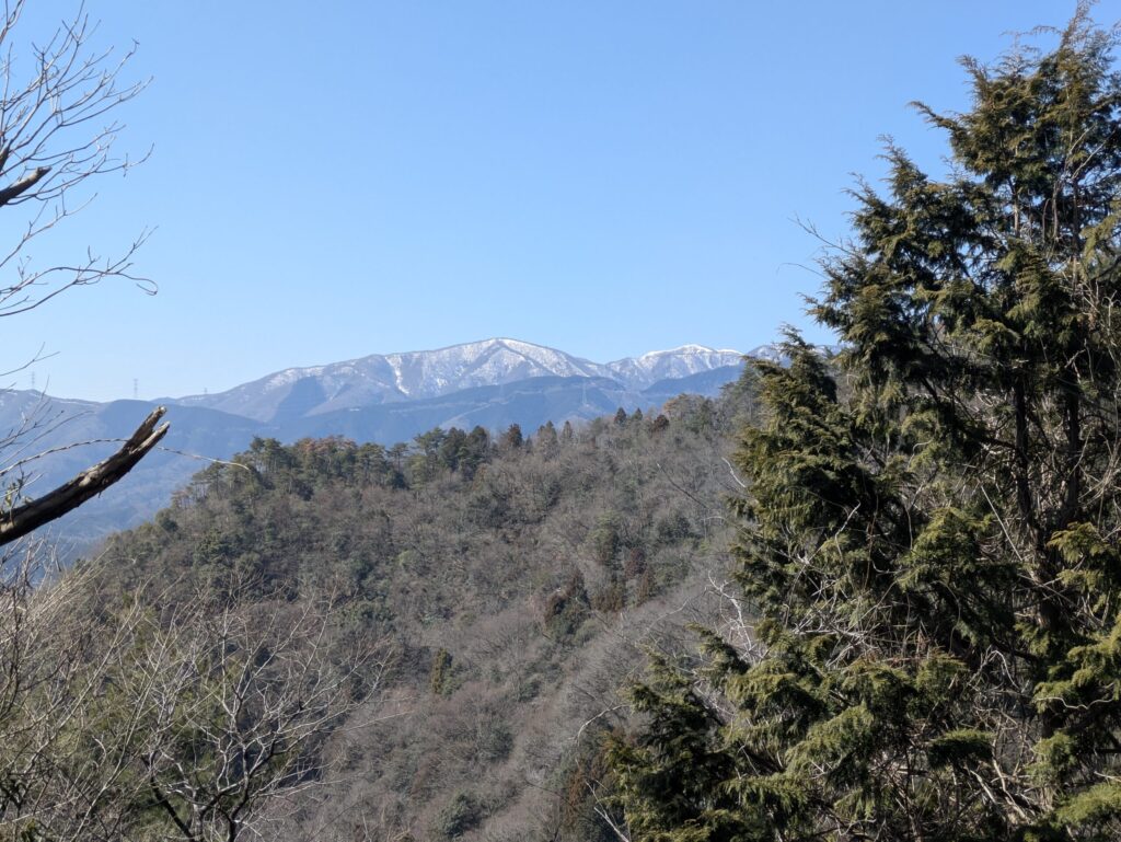 振り返ると冠雪した鈴鹿山脈が見渡せれる。
