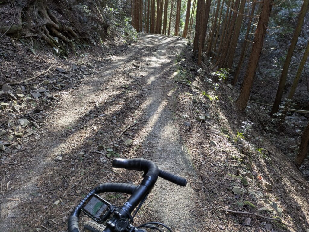 林道に陽が差し込み、良い感じだ。