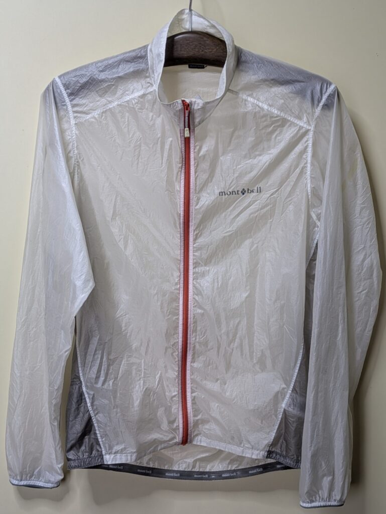 そんなかんだで、モンベルショップへ行き軽いウィンドシェルを見つけたので早速買ってみた。